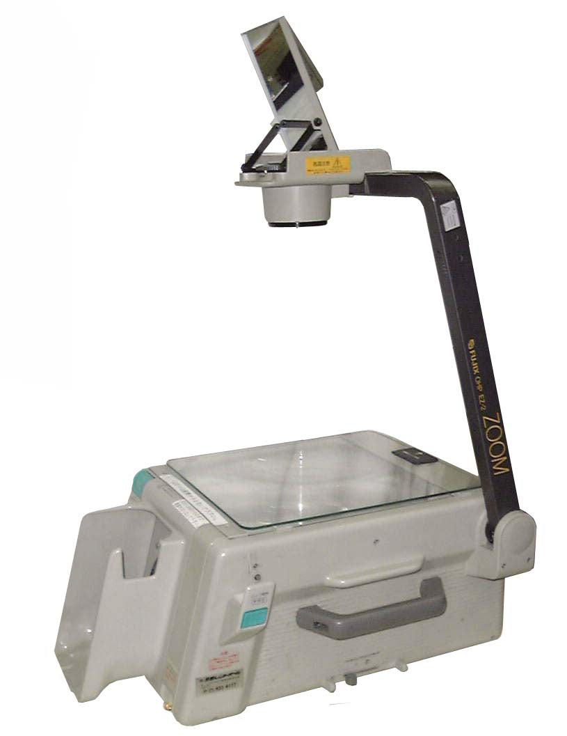 OHPとは、透明なシート(OHPシート)に書いた図や文字を、本体のランプとレンズで拡大してスクリーンに投影する機器です。※OHPシートの販売はありません。